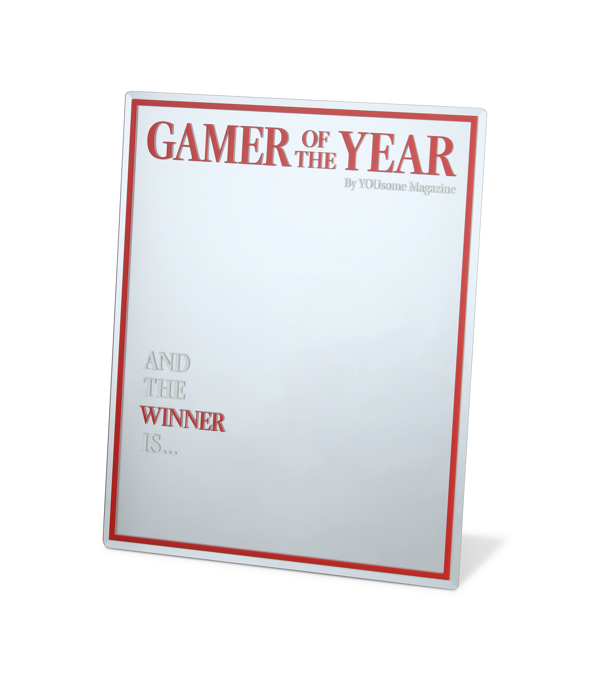 The Gamer Of The Year Magazine Mirror is crafted from 4mm float glass with UV laser printing, this mirror offers exceptional sharpness and durability. Its smooth, clear surface resists warping, ensuring lasting clarity. Featuring a striking red and black magazine design, it adds a bold yet refined statement to any gaming environment.